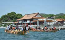 相生市の伝統行事となっているペーロン祭。龍をモチーフにした木造船をみんなで力を合わせて漕ぐペーロン乗船にチャレンジしよう。