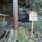 初代の安産杉が枯れてしまい、根っこのみになってしまったため、根の部分に植樹され、2代目となった安産杉。妊婦がお参りし、杉の皮をお守りに入れると、元気な子が安産で生まれるという言い伝えがあります。