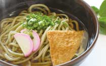王様の野菜とも呼ばれる「モロヘイヤ」を練り込んだ栄養満点の手延べうどんです。淡い緑色の麺は、コシが強く、ツルッとしたのど越しの良さが好評です。