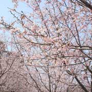 4.68haの丘陵一帯に、河津桜や小松乙女、雛菊桜など、10種類1000本の桜が植栽され、見事な花を咲かせます。また、10月には年2回花を咲かせる珍しい十月桜が、うす紅色の花で楽しませてくれます。