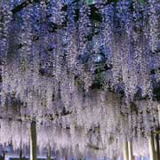 山崎町上寺の大歳神社境内にあるフジは、兵庫県の指定文化財で天徳4年(960年)に植えたと伝えられています。幹回りが焼く3.8mもある大木から枝が四方に伸び、境内一面に広がる藤棚は約500㎡にも及びます。開花期には、約60cm〜1mの花房が垂れ下がり、境内を埋め尽くす様は壮観です。2001年には「かおり風景100選」の一つに選ばれました。