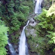 ブナやモミなどの原生林に囲まれた清流が3段状になって、落差88mの岩肌を滑り落ちる姿はとても美しく荘厳。遊歩道で滝を眺望できる場所まで歩けます。「日本の滝100選」にも選ばれた名瀑!