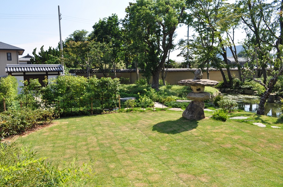 周囲は土塀等で囲まれ、南西には園池が広がっています。敷地内には主屋、長屋門、引き続き矩折れに長屋、土蔵 (米蔵、内蔵、新蔵)の6棟の他、屋敷神、裏門等が残っています。また長屋西端には藩主を迎え入れるための御成門が建てられています。