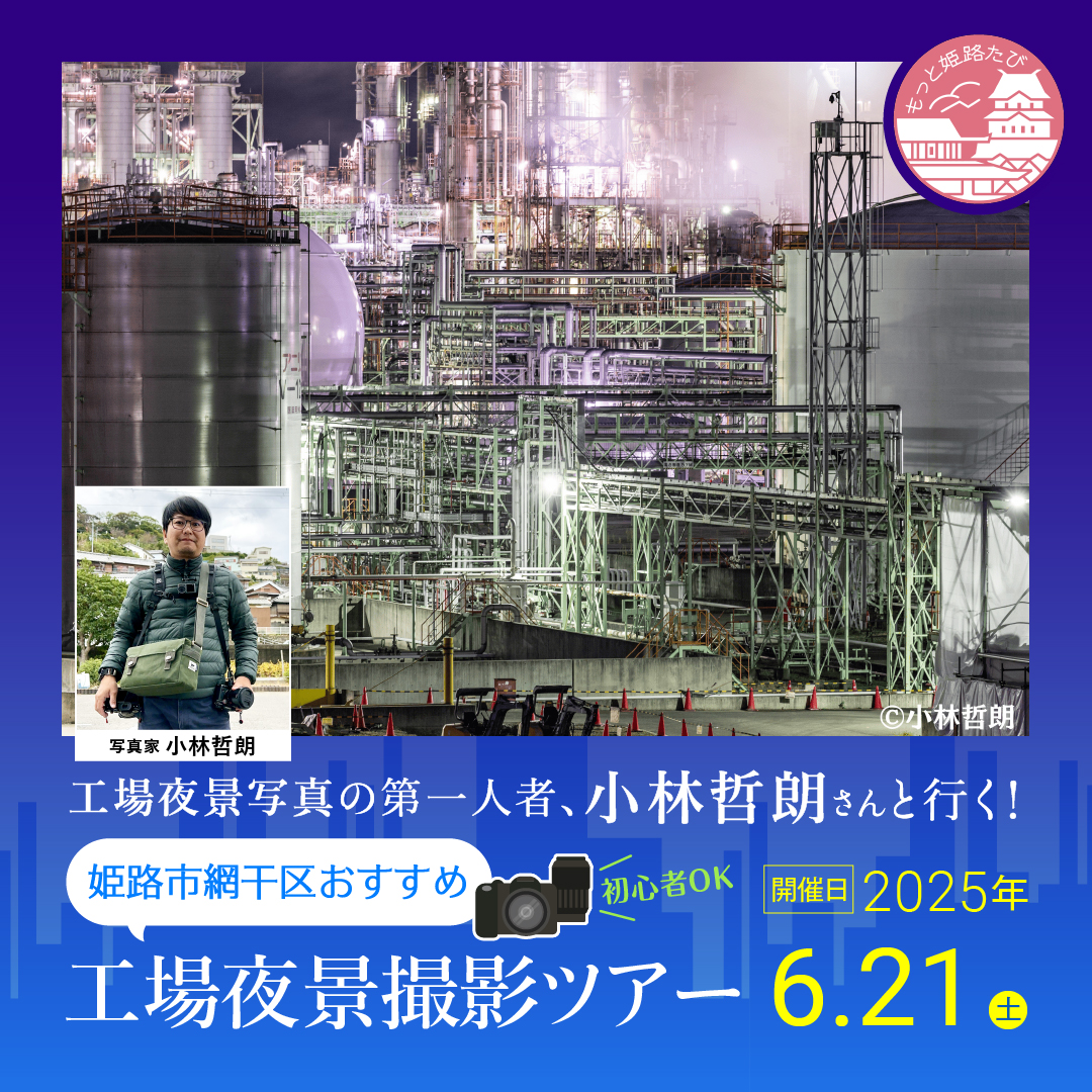 工場夜景写真の第一人者・小林哲朗さんと一緒に、姫路市網干区のおすすめ工場夜景スポットを巡る撮影ツアーを開催します!
